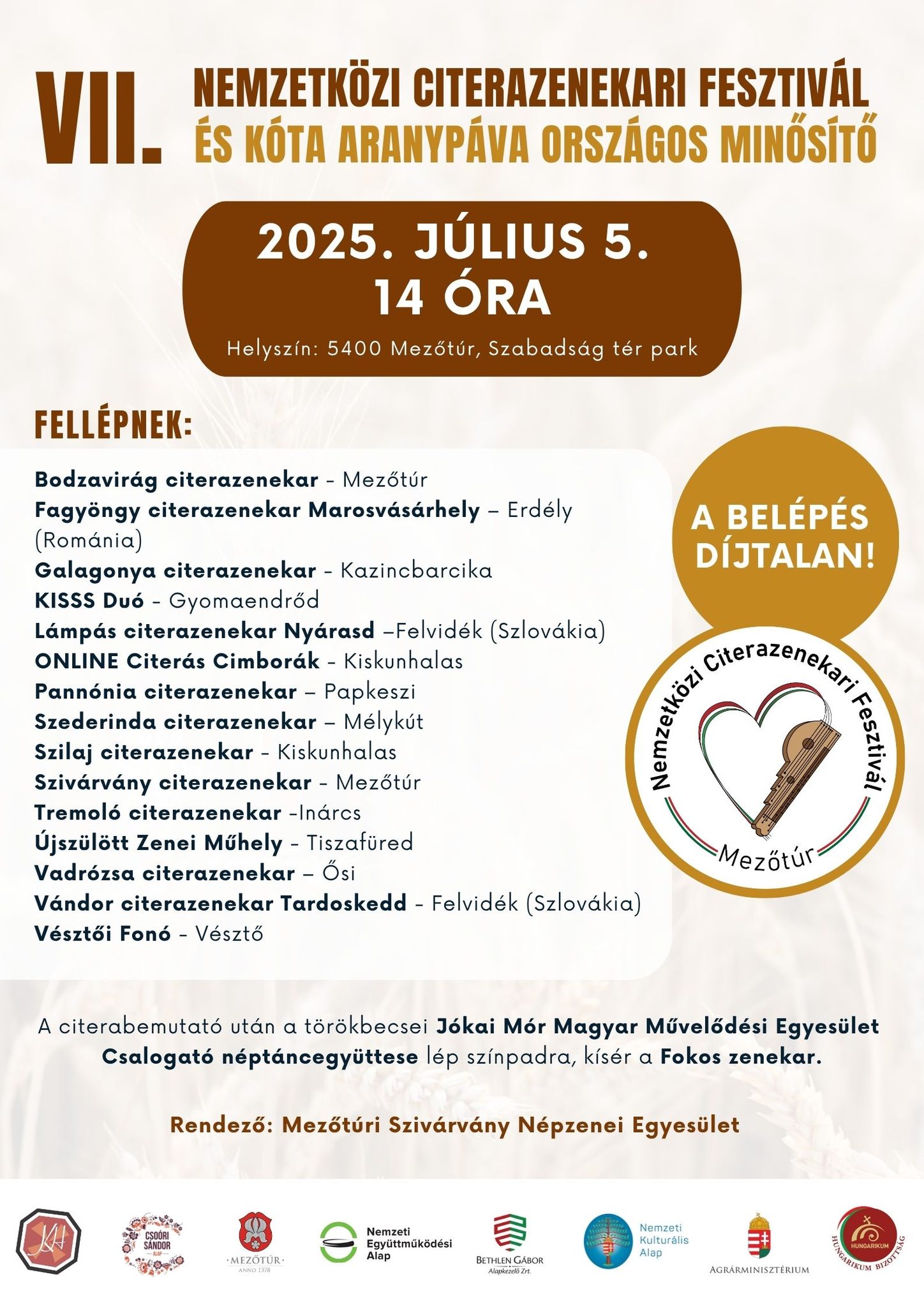 7. Nemzetközi Citerazenekari Fesztivál és Kóta Aranypáva Országos Minősítő