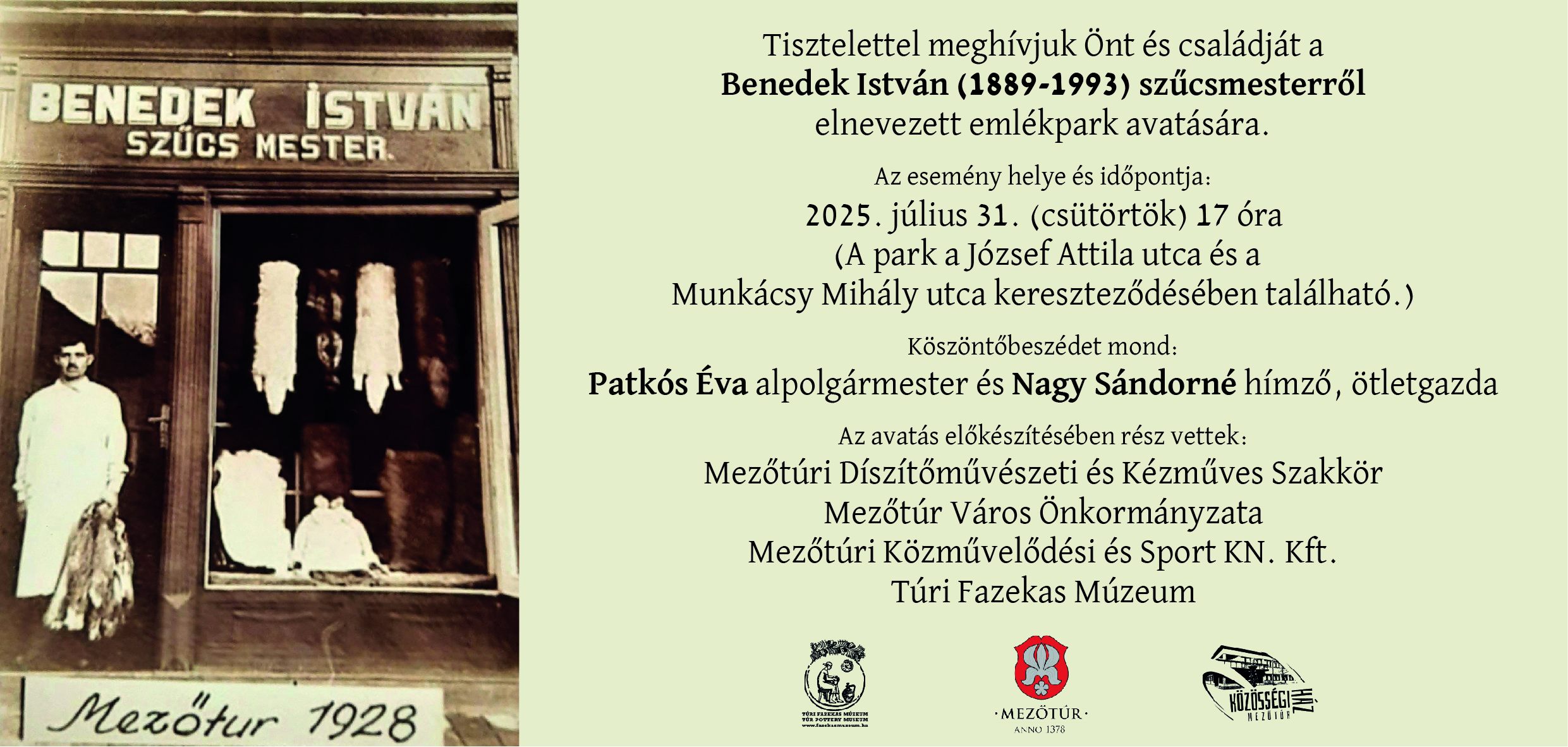 Talán kevésbé ismert tény, hogy a 19. század második felében Mezőtúr volt szűcsmesterség egyik legnagyobb alföldi központja. A túri ködmön és a túri bunda szépsége, kidolgozottsága, praktikussága és ára miatt is külön fogalom volt a viseleti darabok között. E darabok elkészítésének egyik utolsó tudora volt Benedek István szűcsmester.